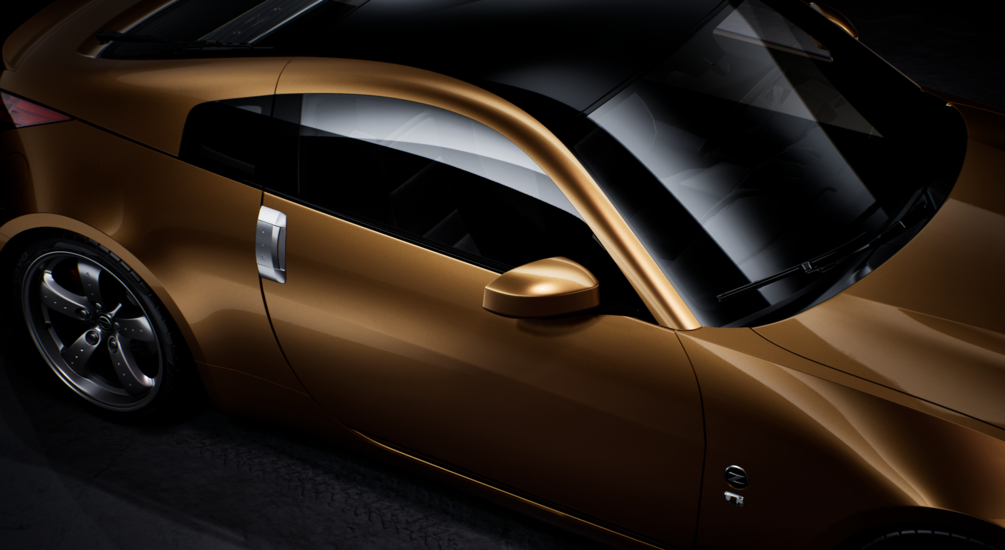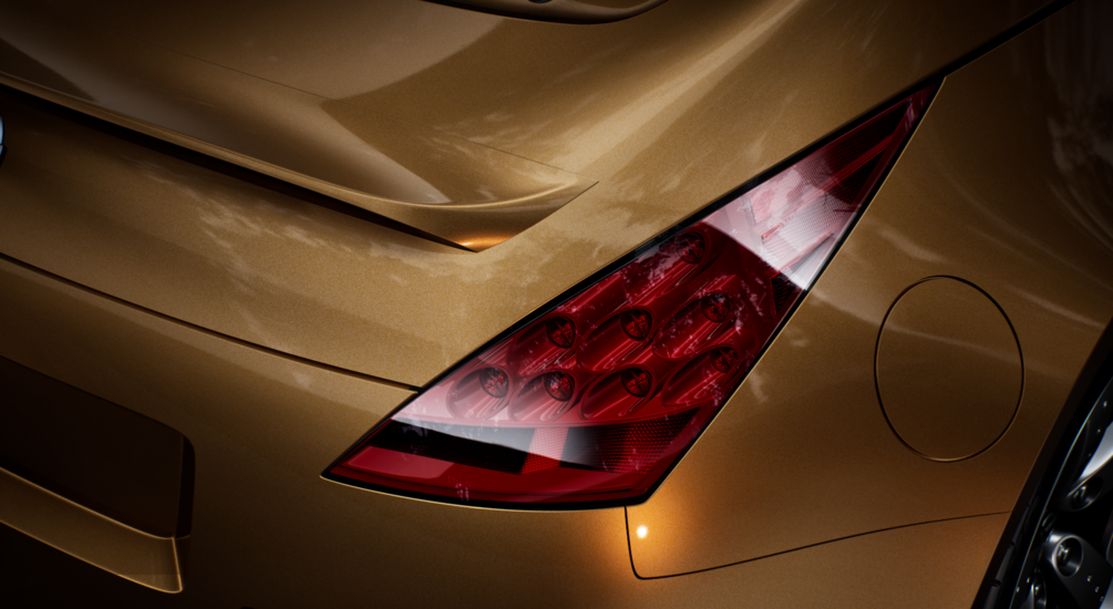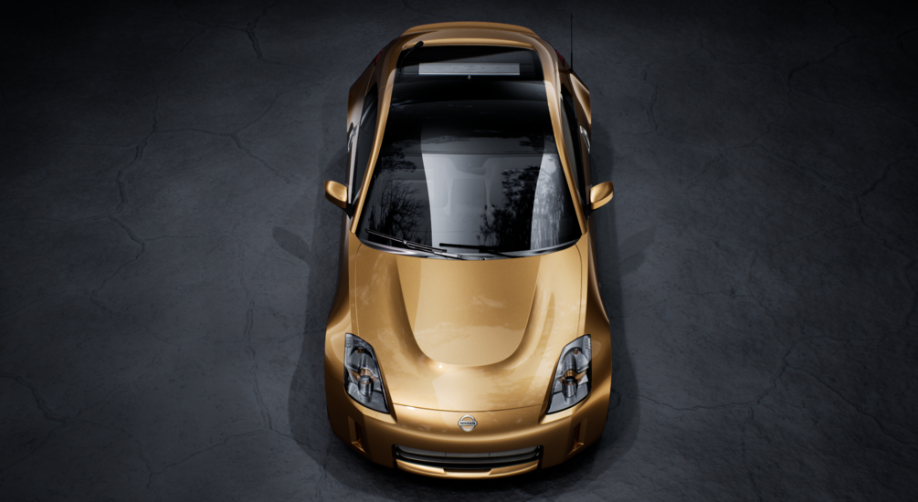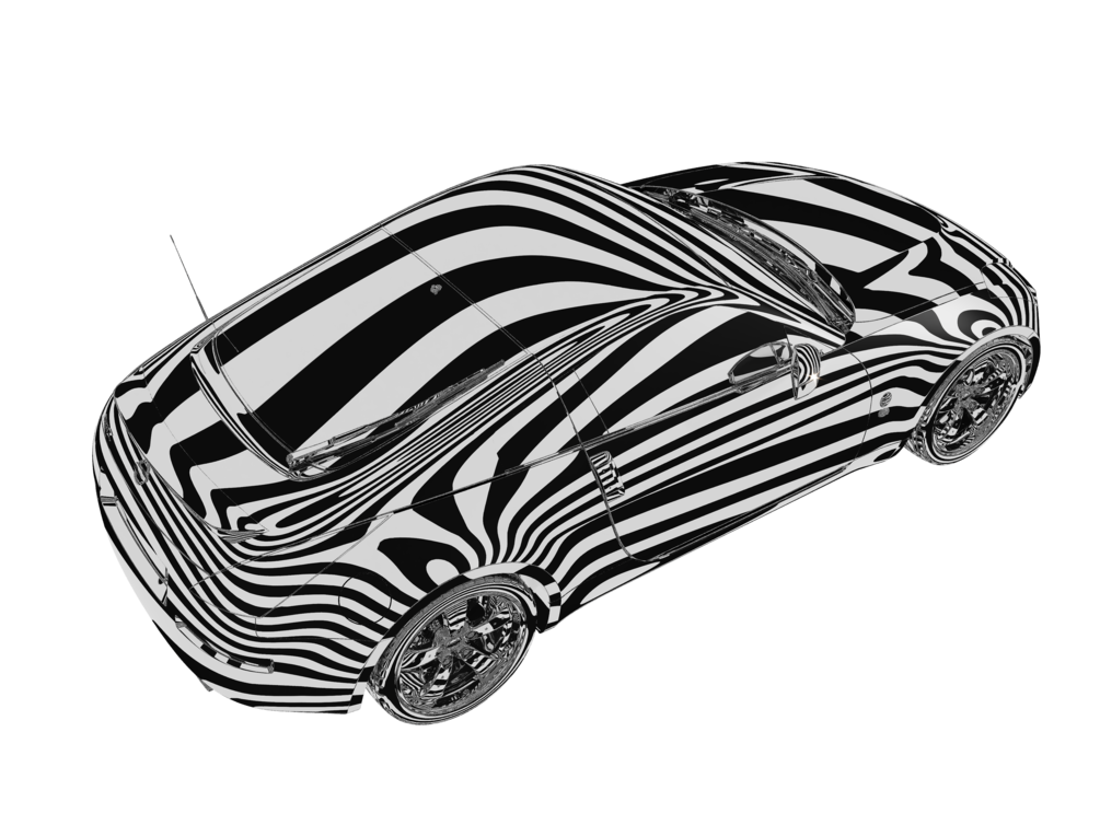 High detailed exterior 3D model of Nissan 350Z. You can see the zebra reflection image for surface quality check
